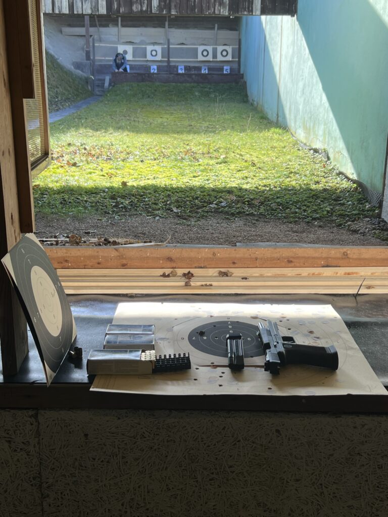 Auf dem 25 m Kurzwaffenstand konnten die Teilnehmer mit Kleinkaliber Sportpistole, Großkaliber Revolver und großkalibrigen halbautomatischen Pistolen auf die Wettkampfscheiben schießen.